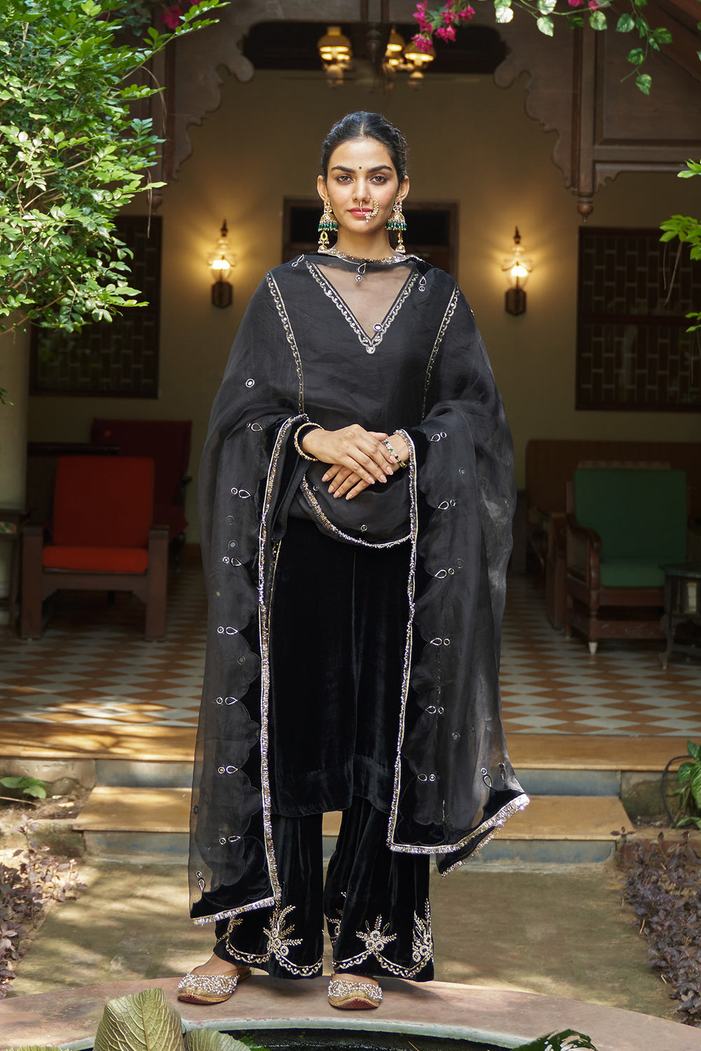 Zooni velvet Black anarkali with palazzo and dupatta (set of 3)