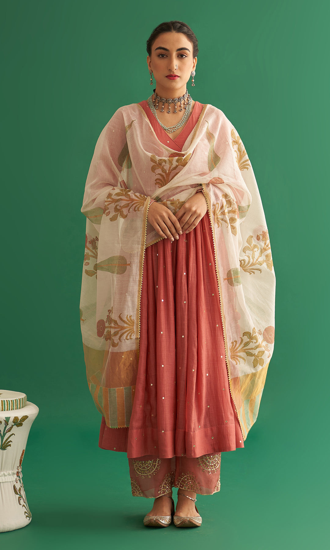 Mirzya - Mughal Block Printed Anarkali With Leheriya Dupatta - set of 3