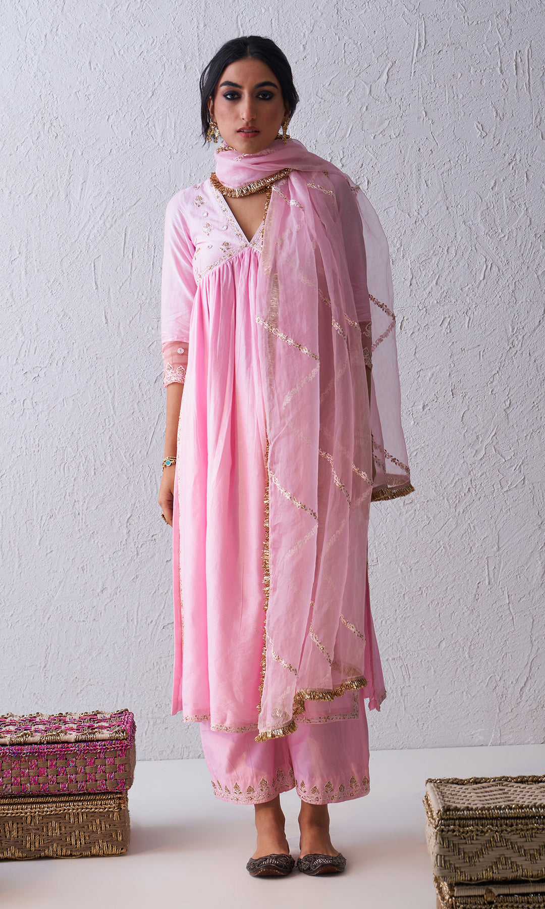 Jahanara Pink Gota Embroidered Anarkali With Dupatta and Chooridar - Set of 3