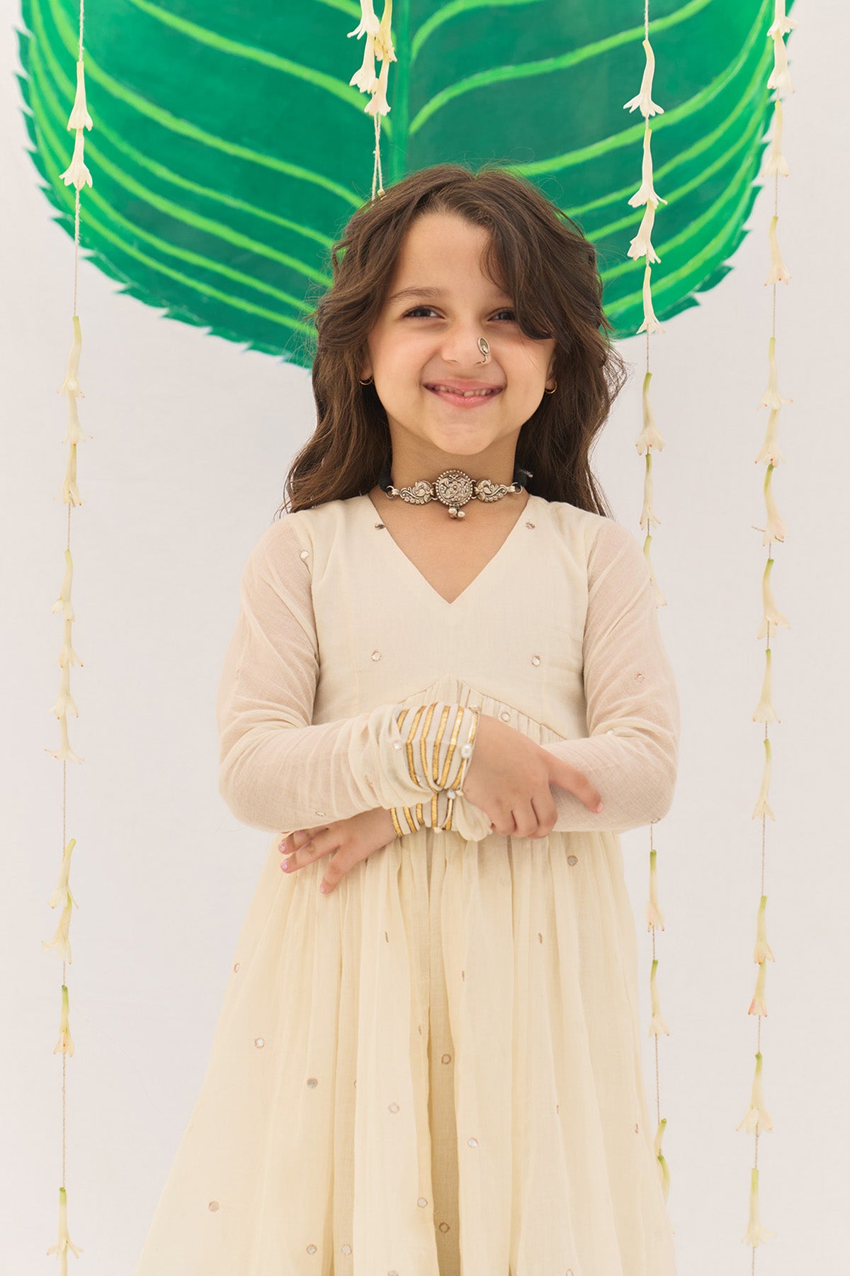 Jameela Off White v Neck Anarkali with Chooridar and Dupatta (set of 3)