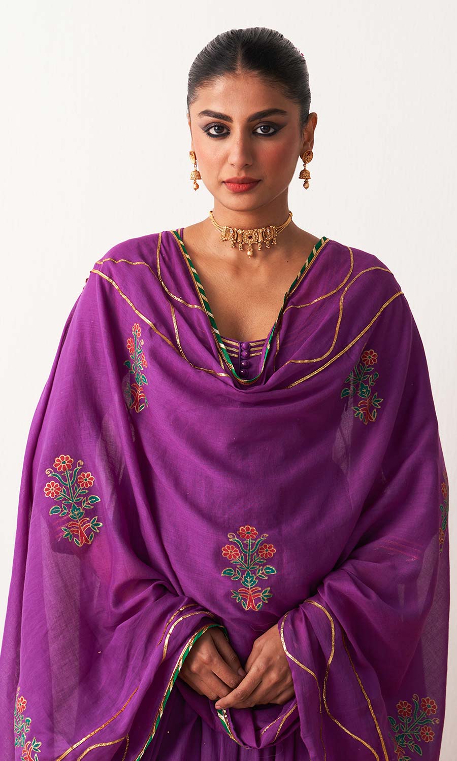 - FABRIC USED : Kurta- Mukaish Mul, Lining- Mul, Gharara-Cotton Mul, Dupatta- Cotton Mul