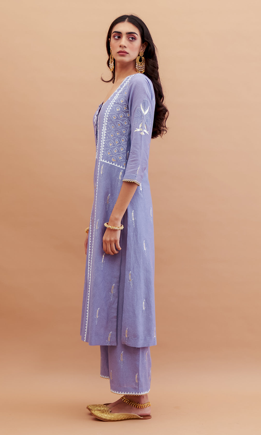 Rumi foils - Deep Lilac block printed kurta with palazzo and dupatta - set of 3