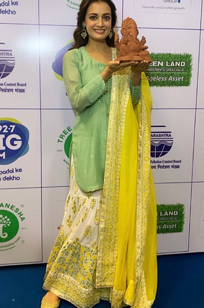Dia Mirza in CHAAND GREEN YELLOW JAAL & BOOTI BLOCK PRINTED SHARARA SET OF 3