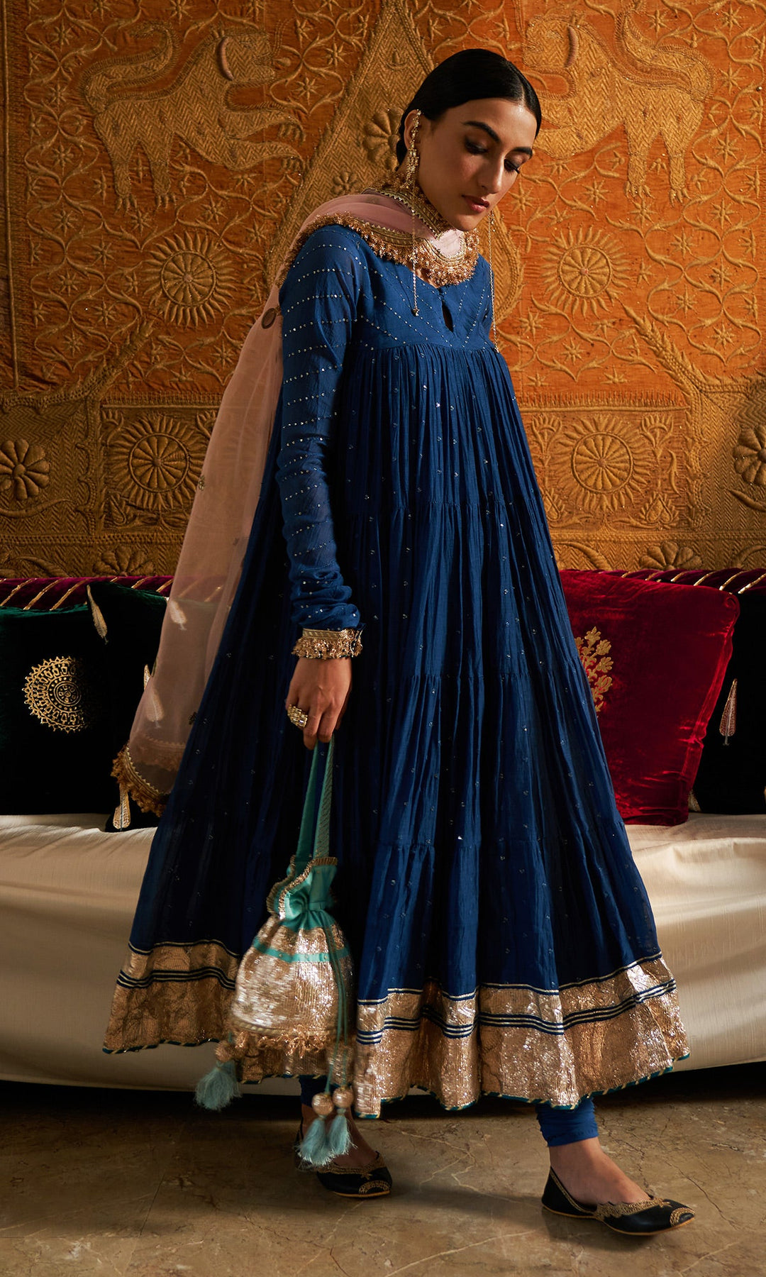 Iridhi Dogra in Phillauri Blue Tiered Anarkali With Chooridar And Dupatta - Set Of 3