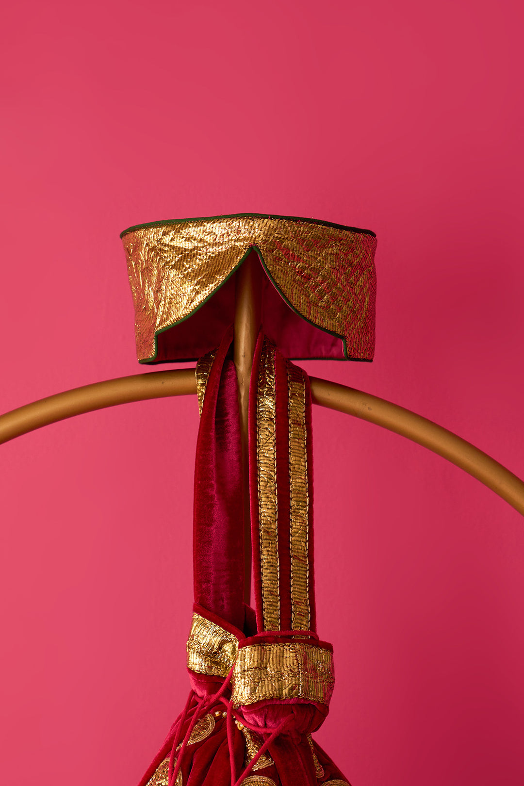 Khizaan Chintz Emerald Green Embroidered Velvet Cap Only