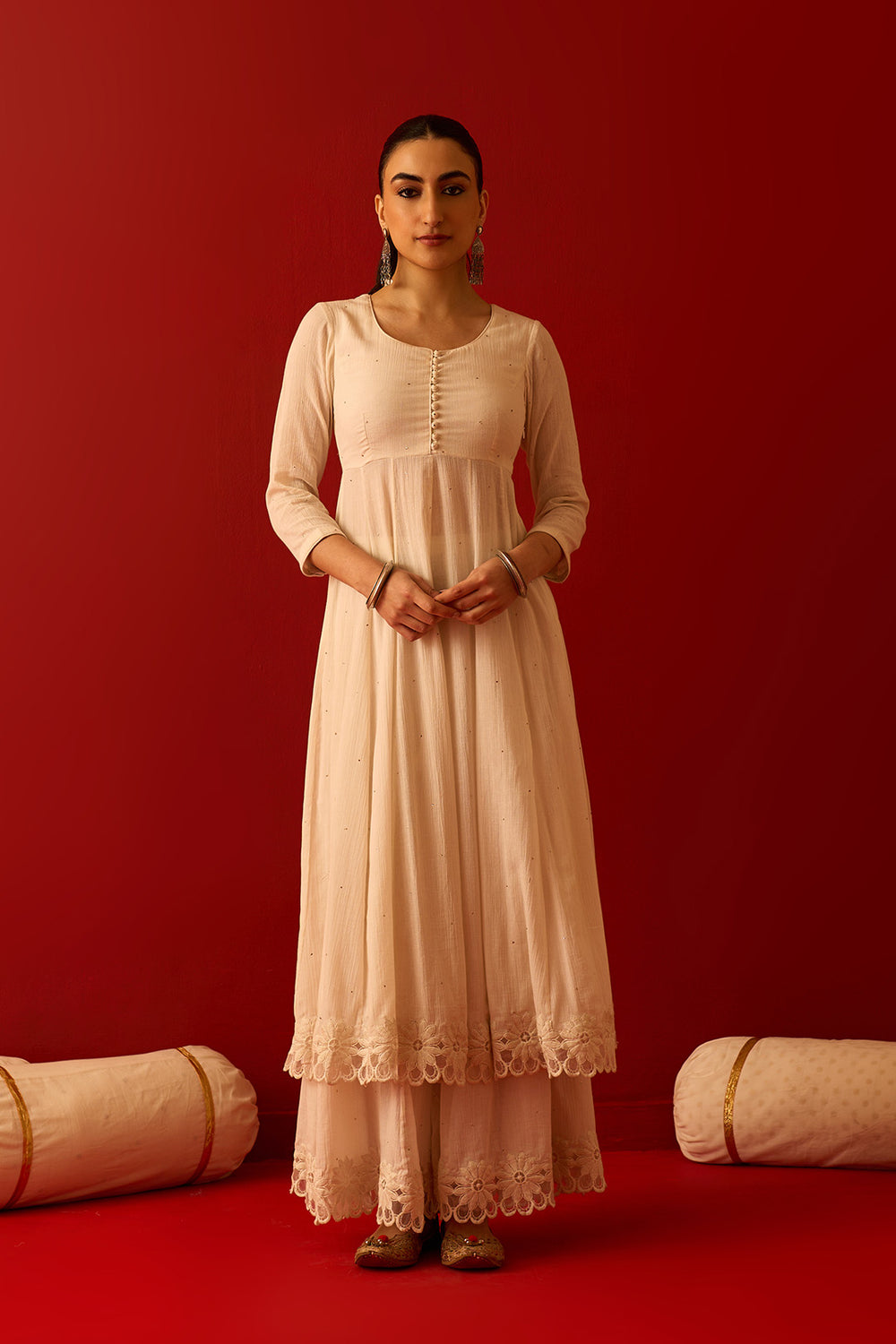 Chaand Raat Off White Block printed foil anarkali with palazzo and dupatta (set of 3)
