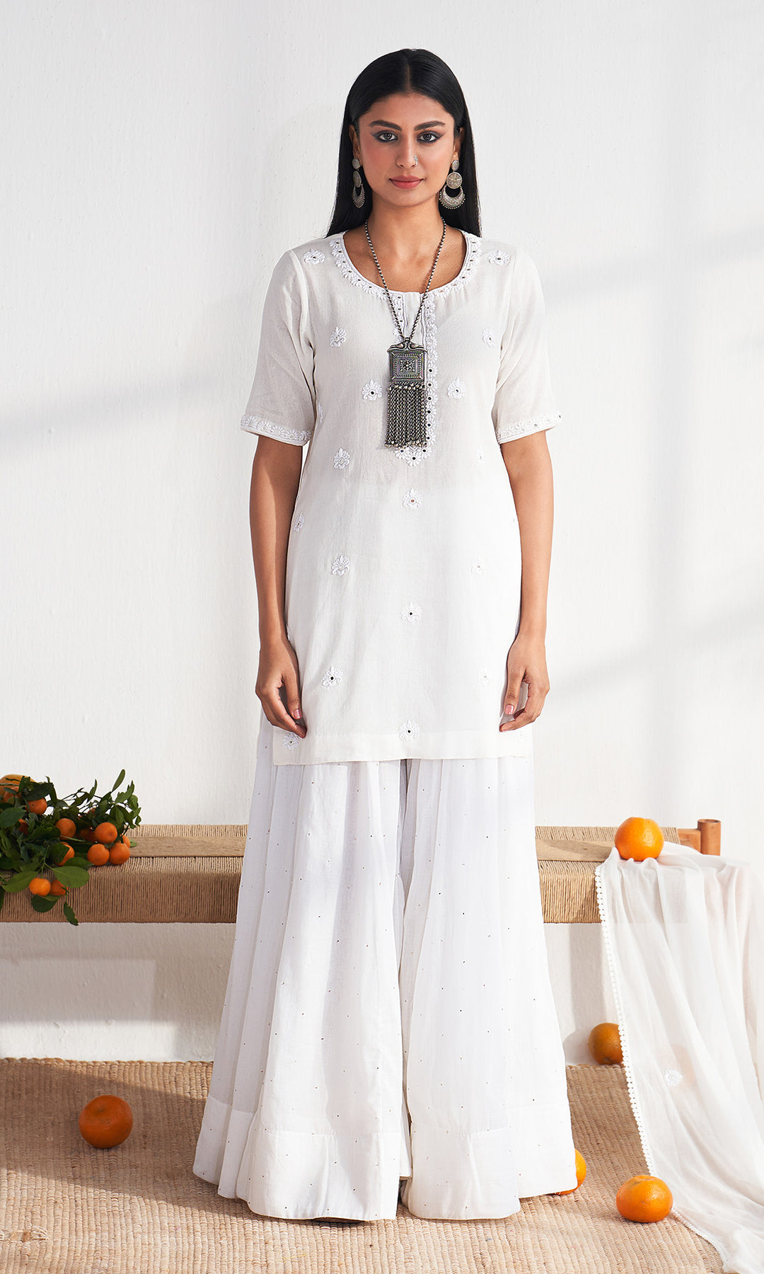 • FABRIC USED : Kurta - Cotton Mul Sharara-Mukaish Mul Dupatta- Cotton Mul