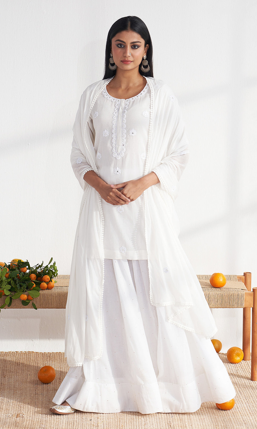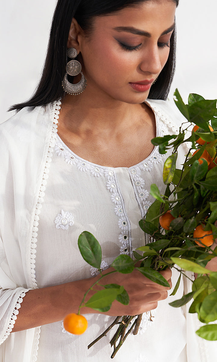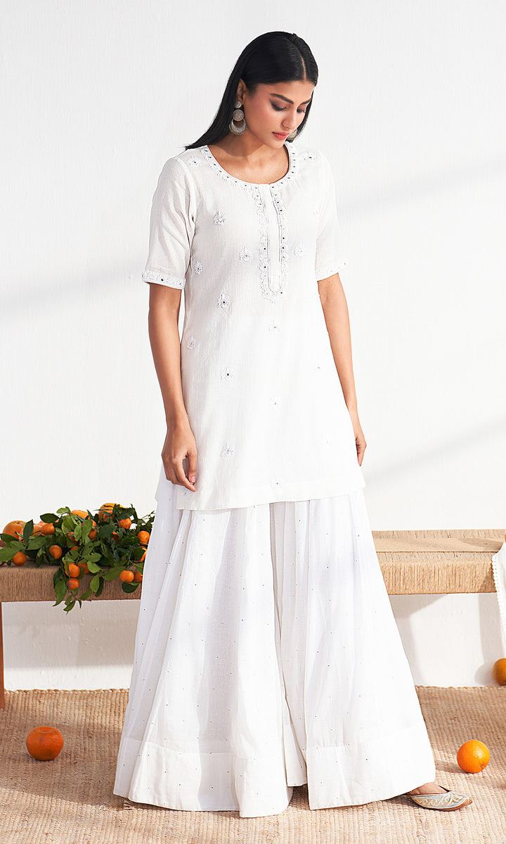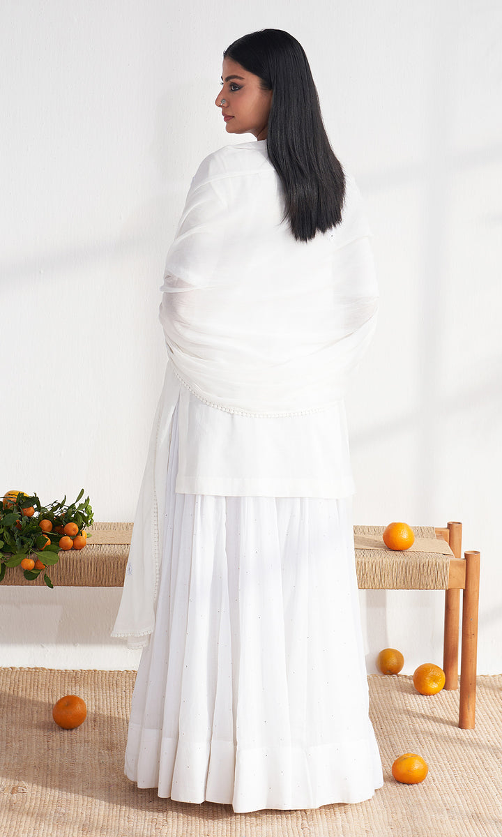 Chikankari White kali sharara set ( set of 3)