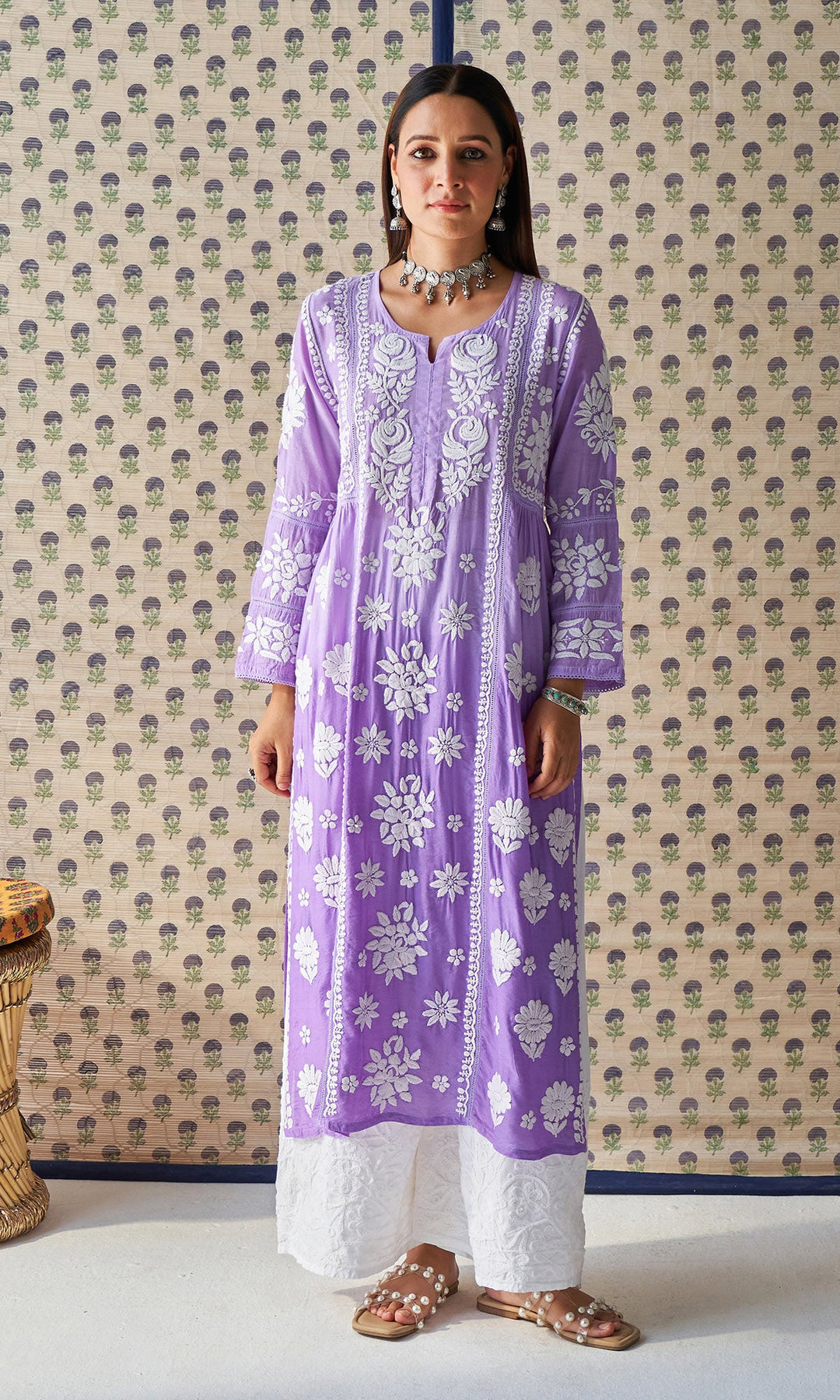Handcrafted Chikankari Purple Ombre Straight Kurta