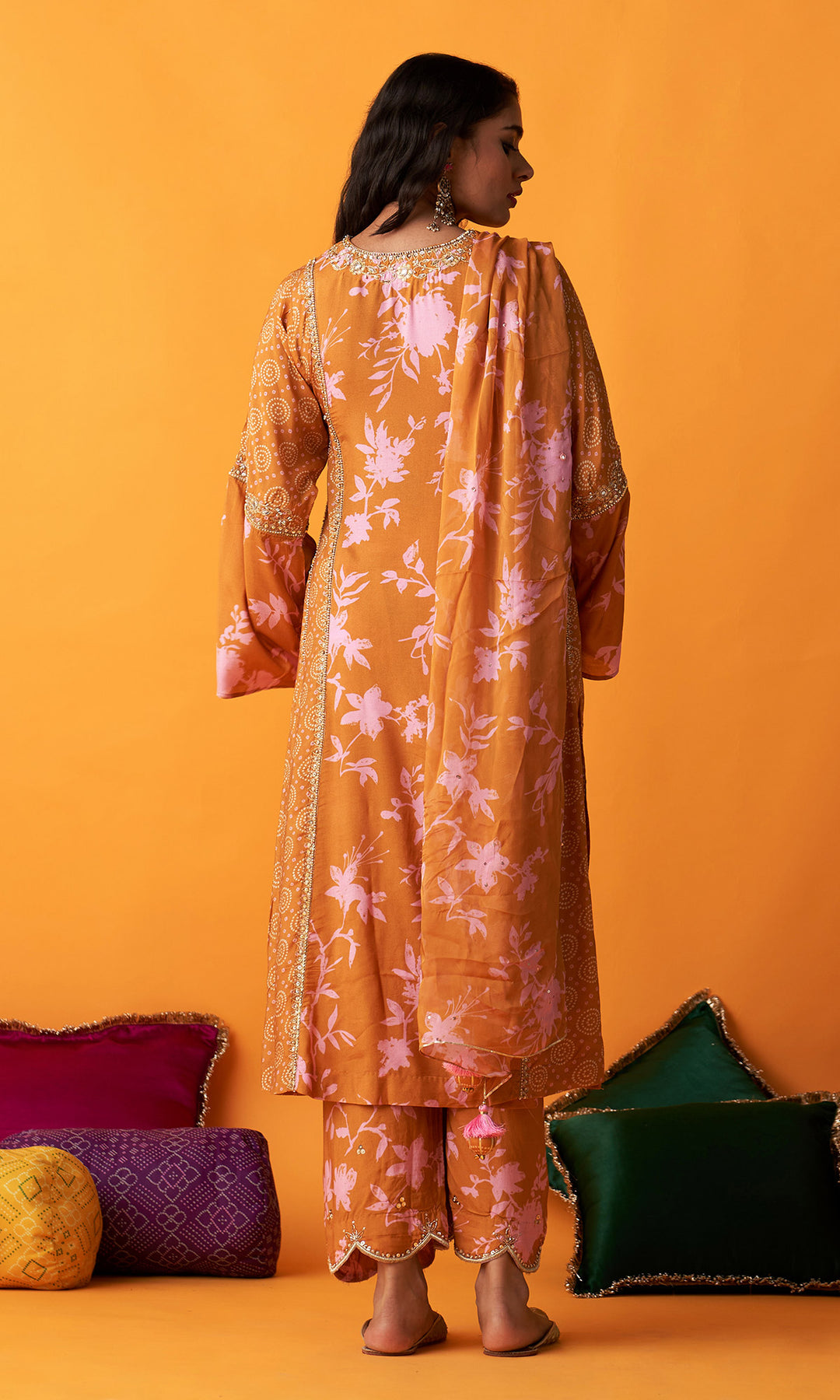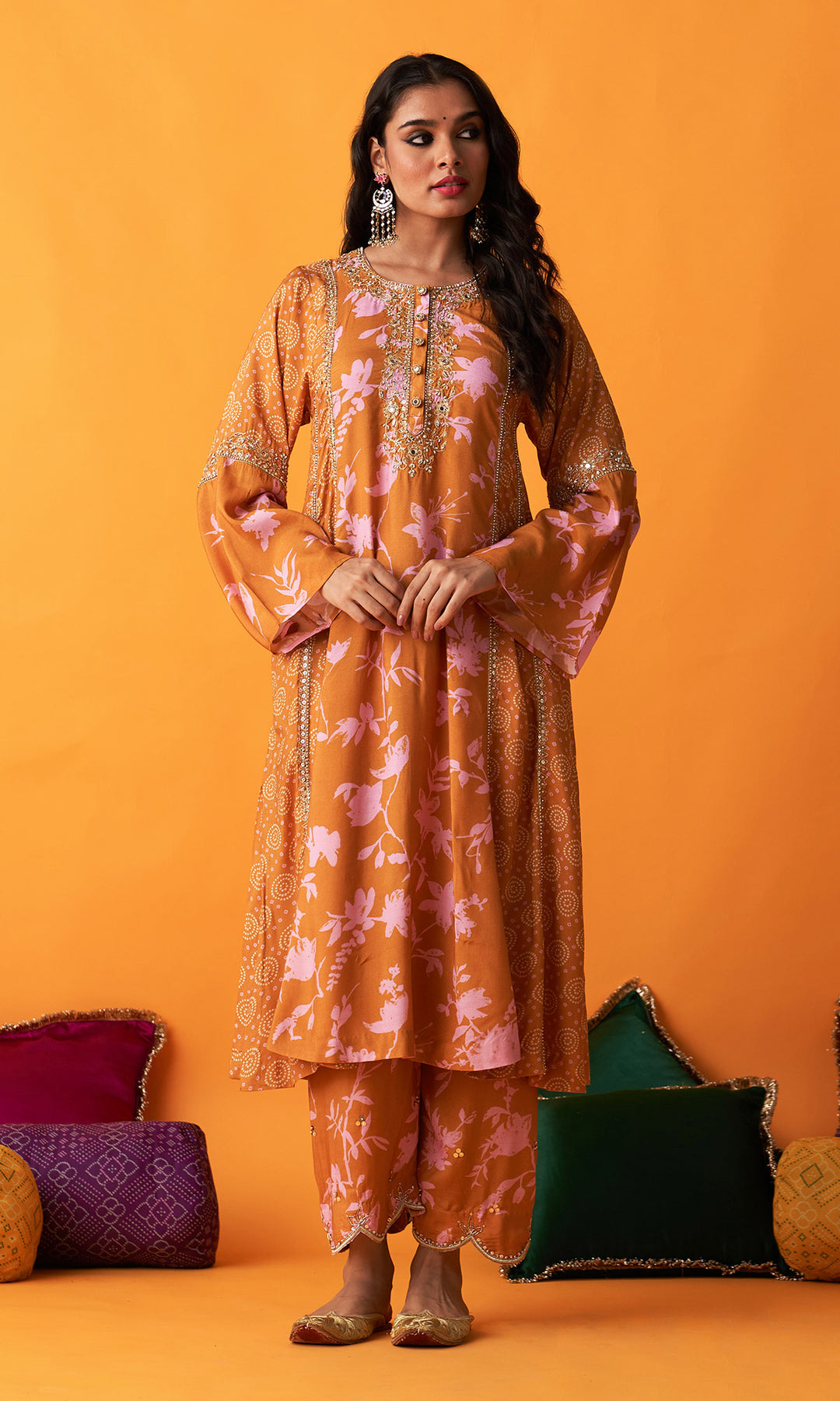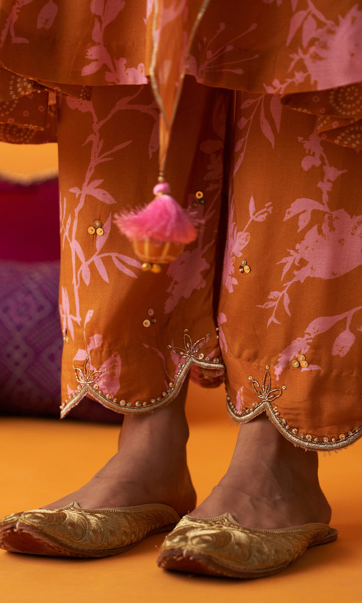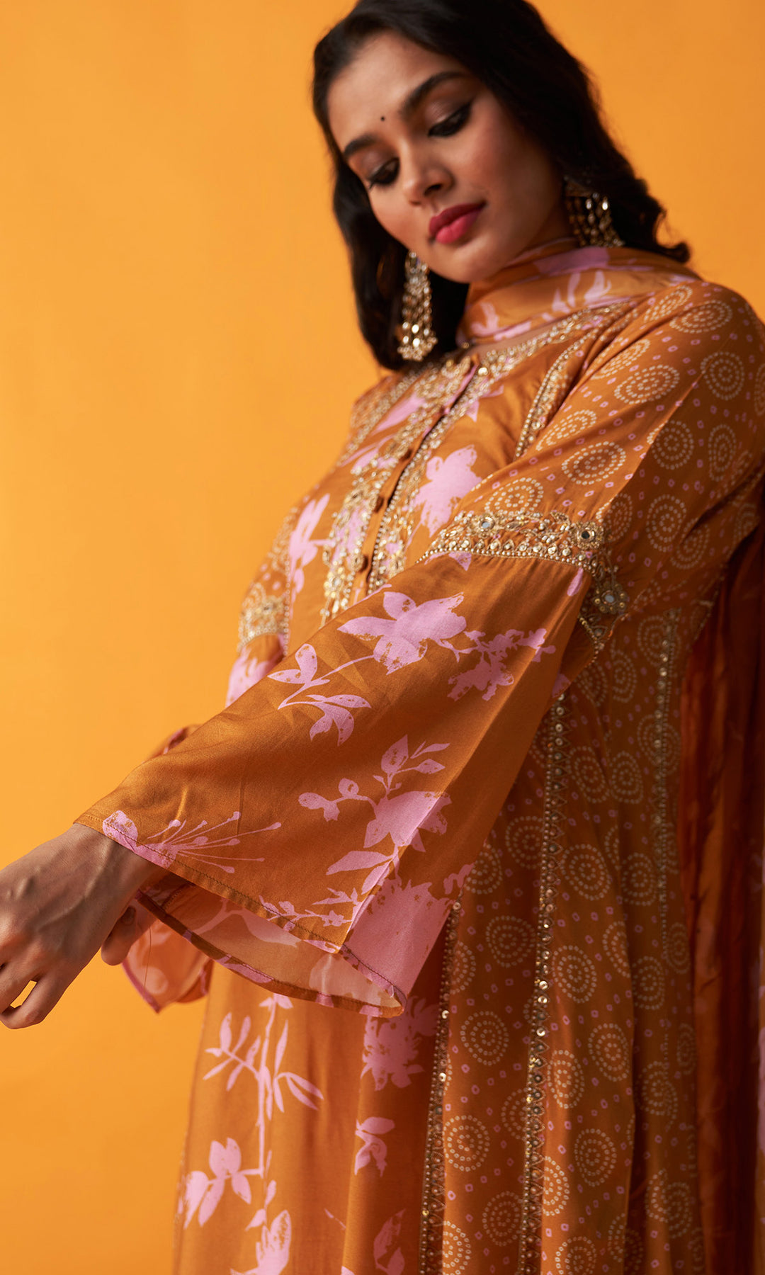 This set includes choga, palazzoand dupatta.Choga embellish aari and hand embroidery with pockets. Palazzo is detailing in hand embroidery. Dupatta is detailed with hand embroidery finish with tassels.