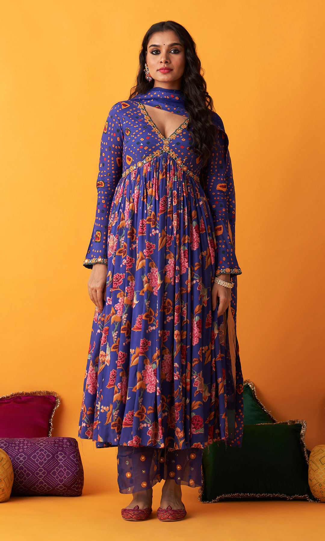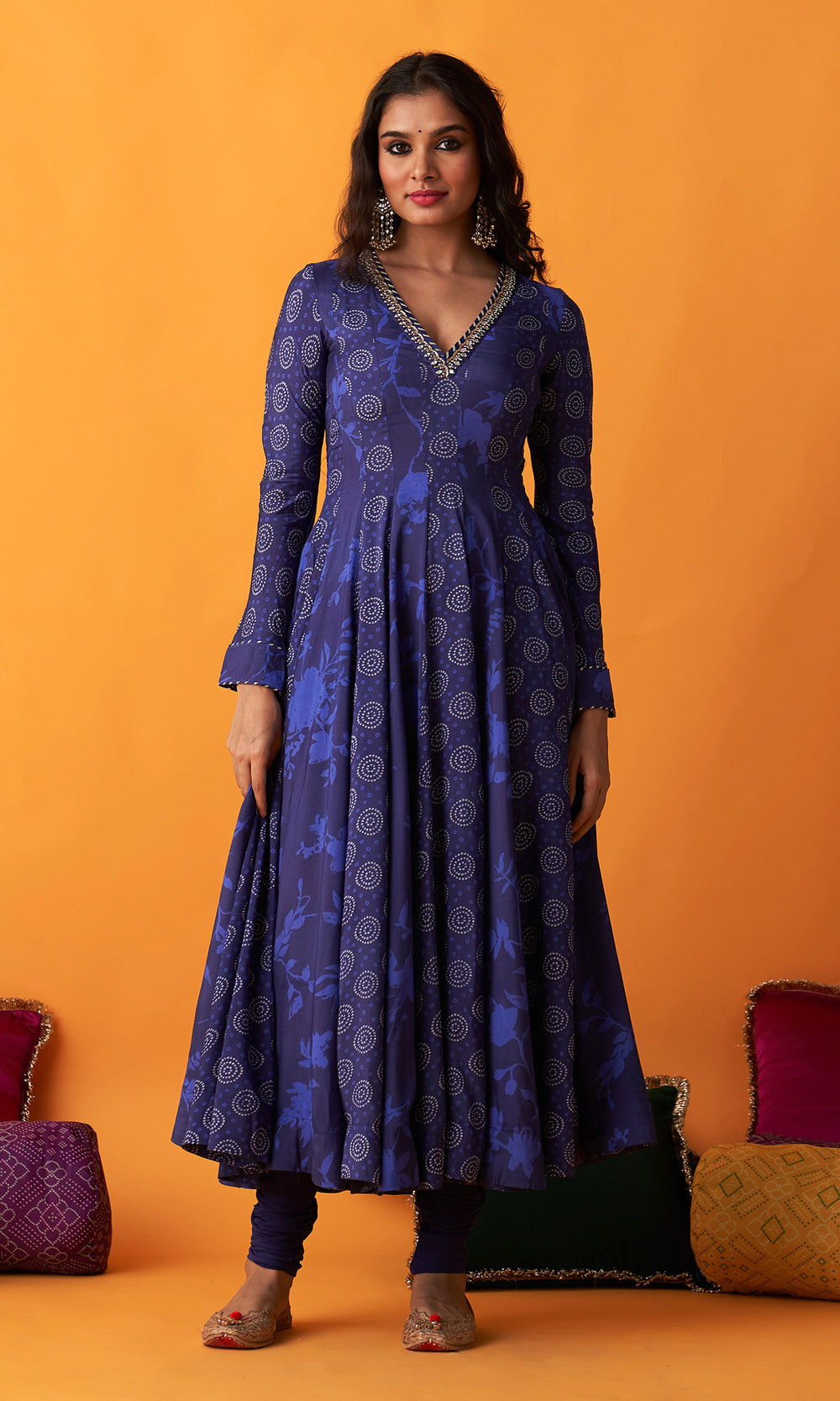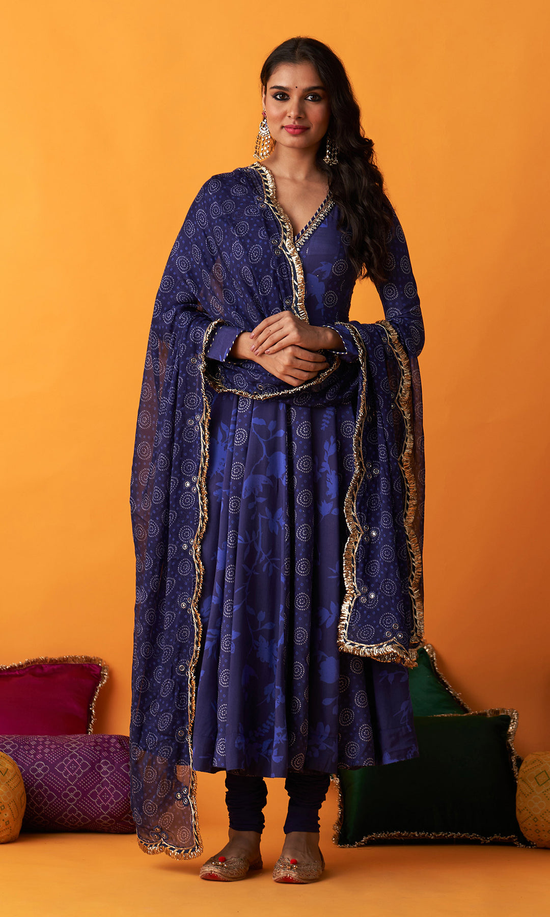 Rangreza 2.0 Bandhani Blue Anarkali with Chooridar and Dupatta (Set of 3)
