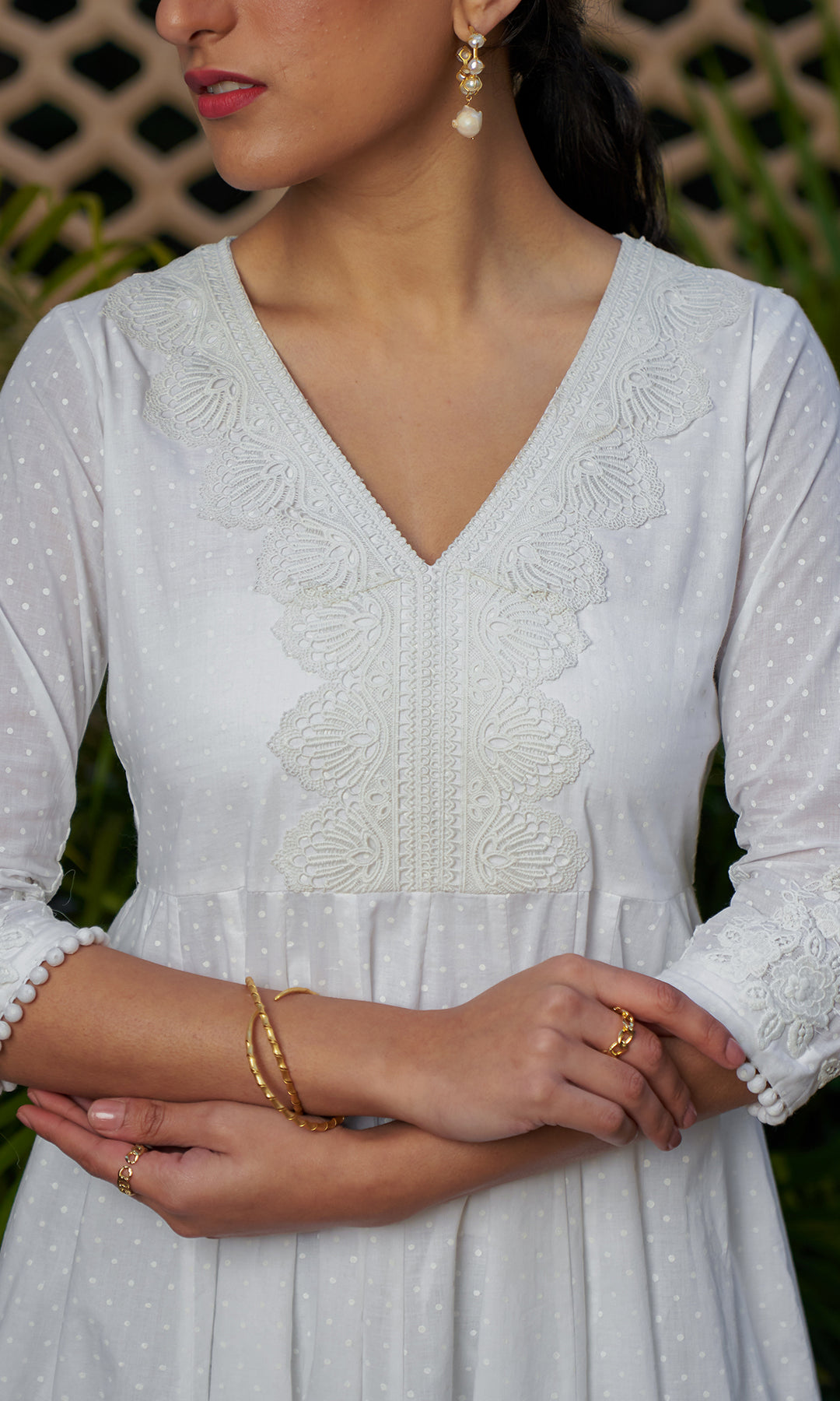 SUKOON WHITE BLOCK PRINTED ANARKALI