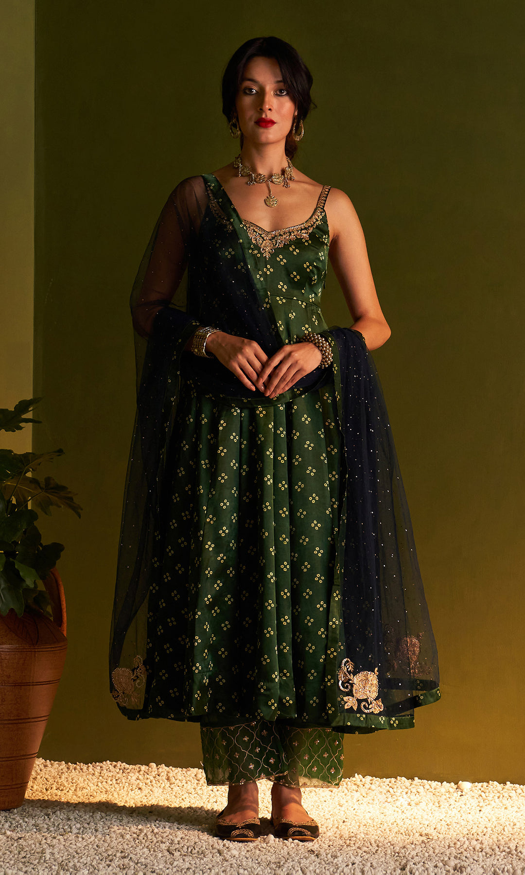 Phillauri Emerald Green Tiered Anarkali With Chooridar And Dupatta - Set Of 3