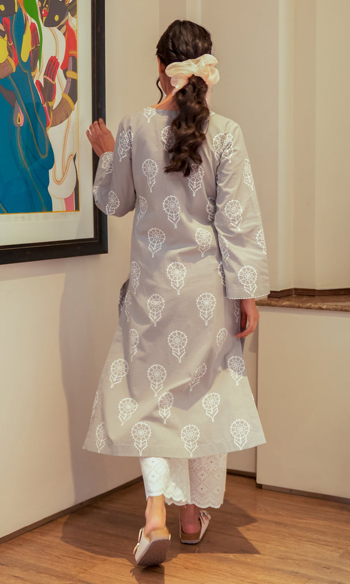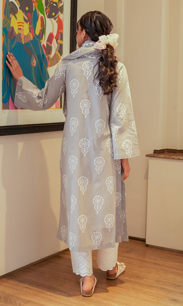 DAISY 2 GREY FLORAL PRINTED KURTA WITH PALAZZO - SET OF 2