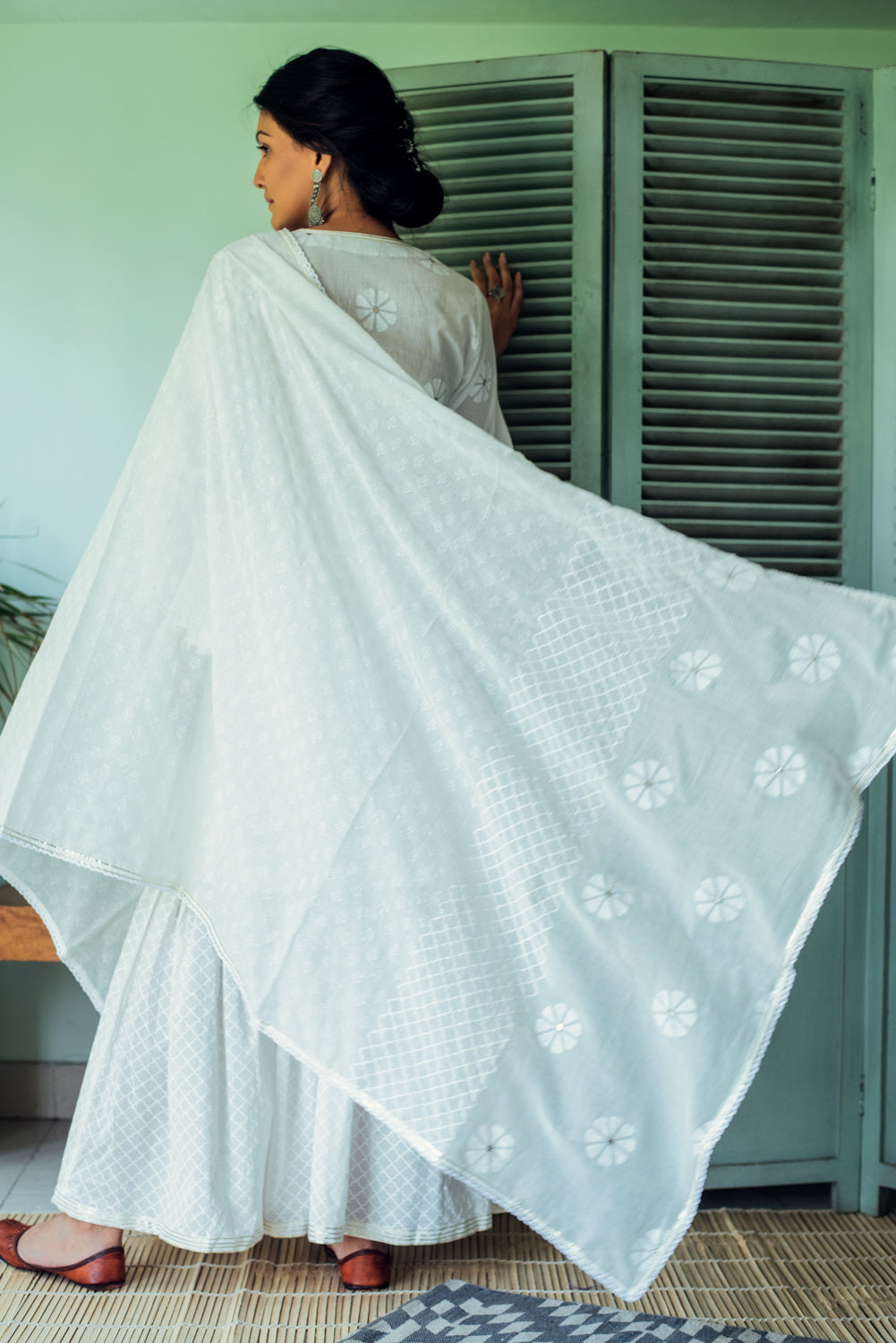 block printed cotton dupatta with badla.- COLOR : Ivory.