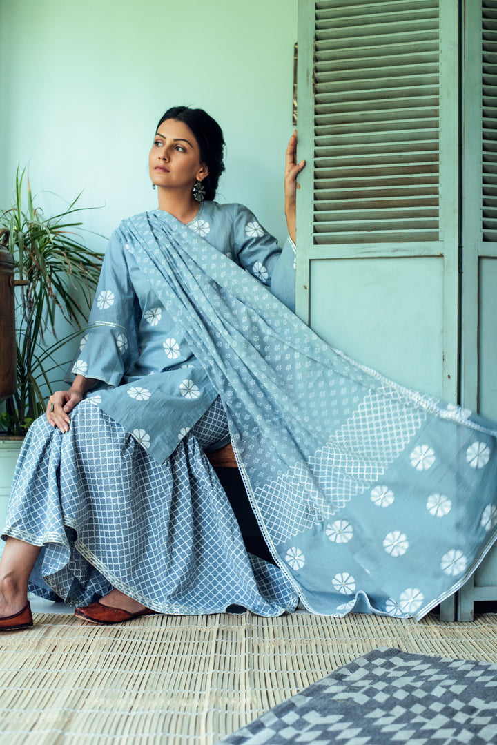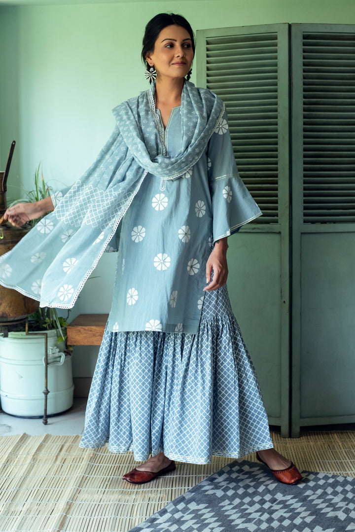 Gul Powder Blue Badla Embroidered Sharara Set - Set of 3