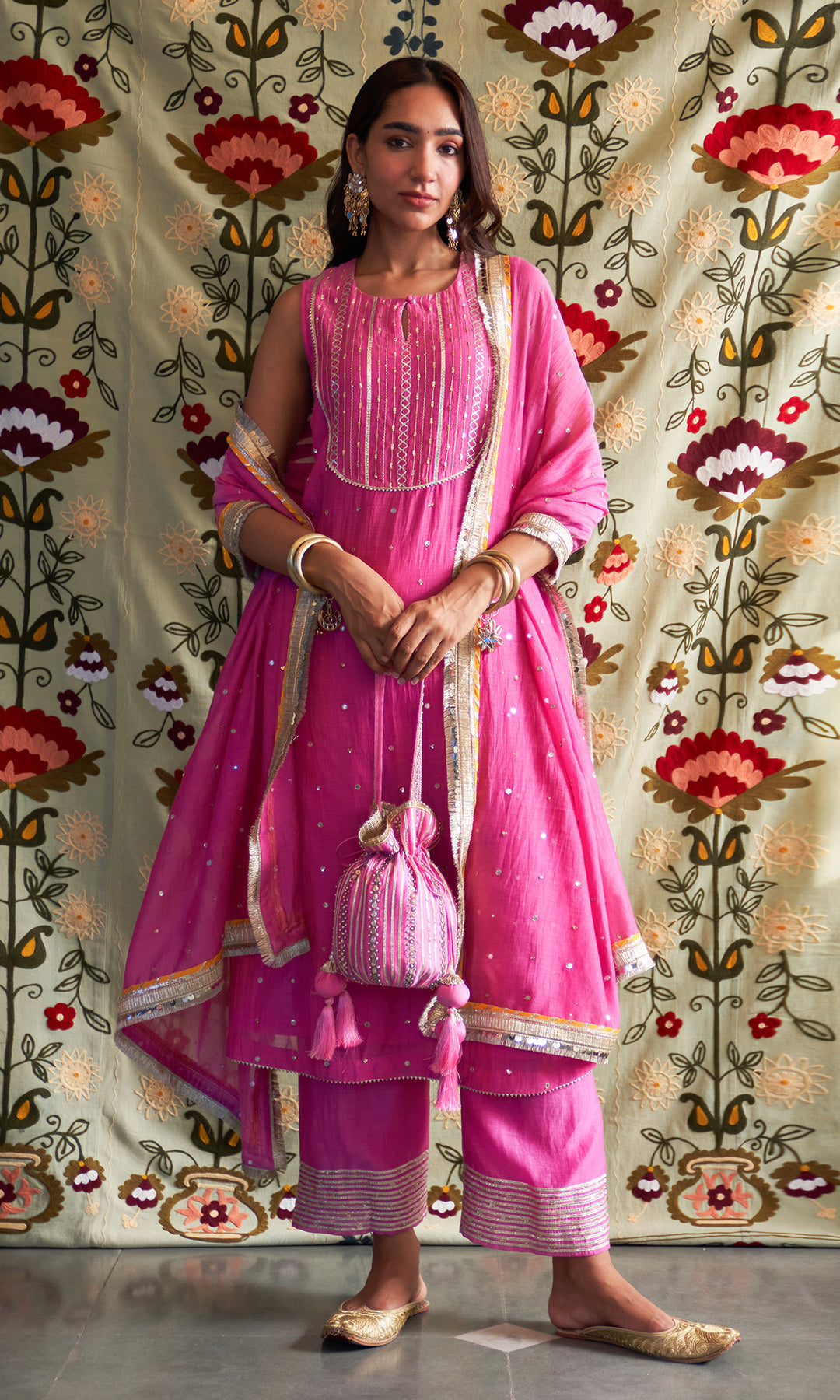 Ulfat Pink Lehariya Lehariya Mirror embroidered Potli