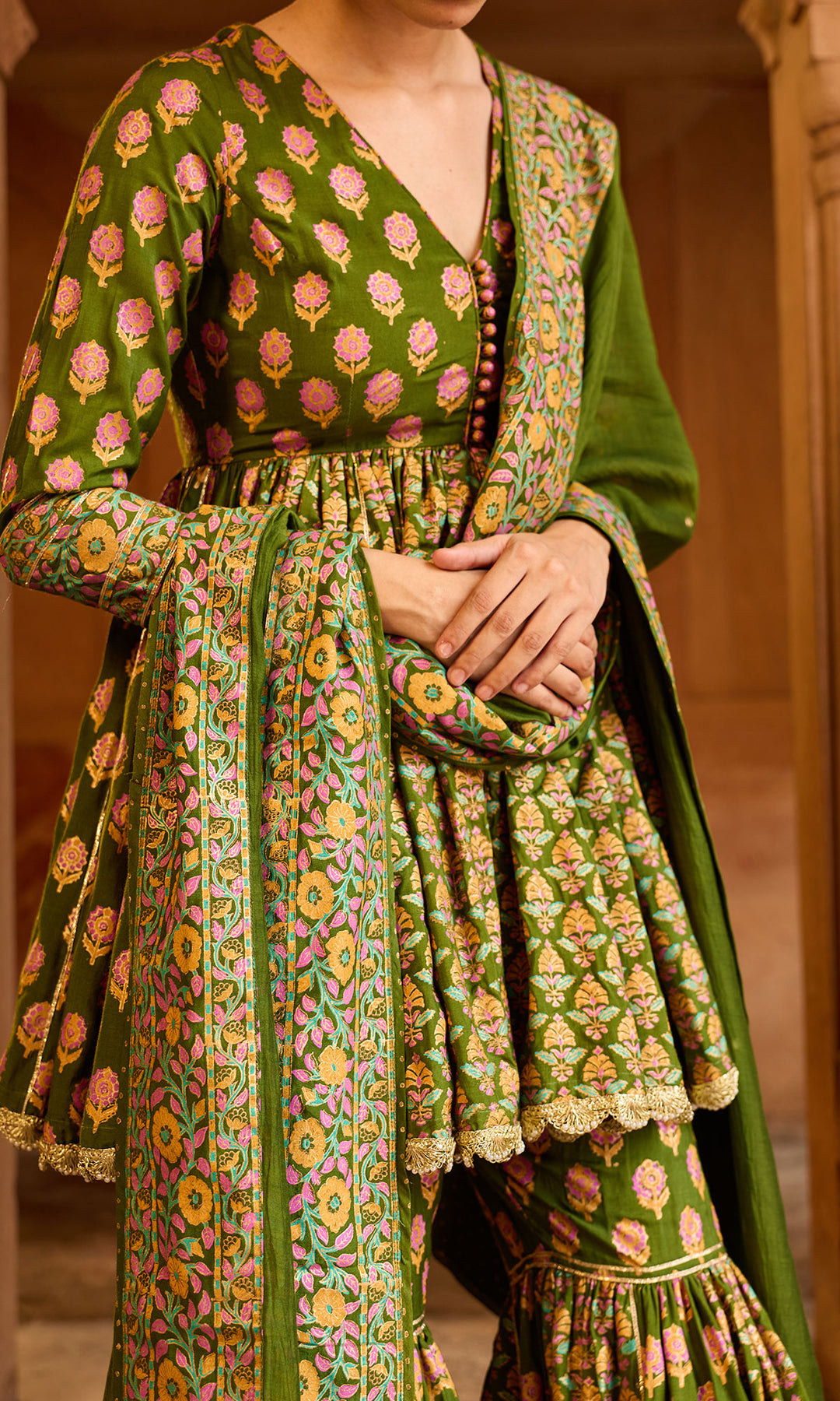 • FABRIC USED: Kurta - Muslin, Garara Muslin , Dupatta -  Sheesha Chanderi