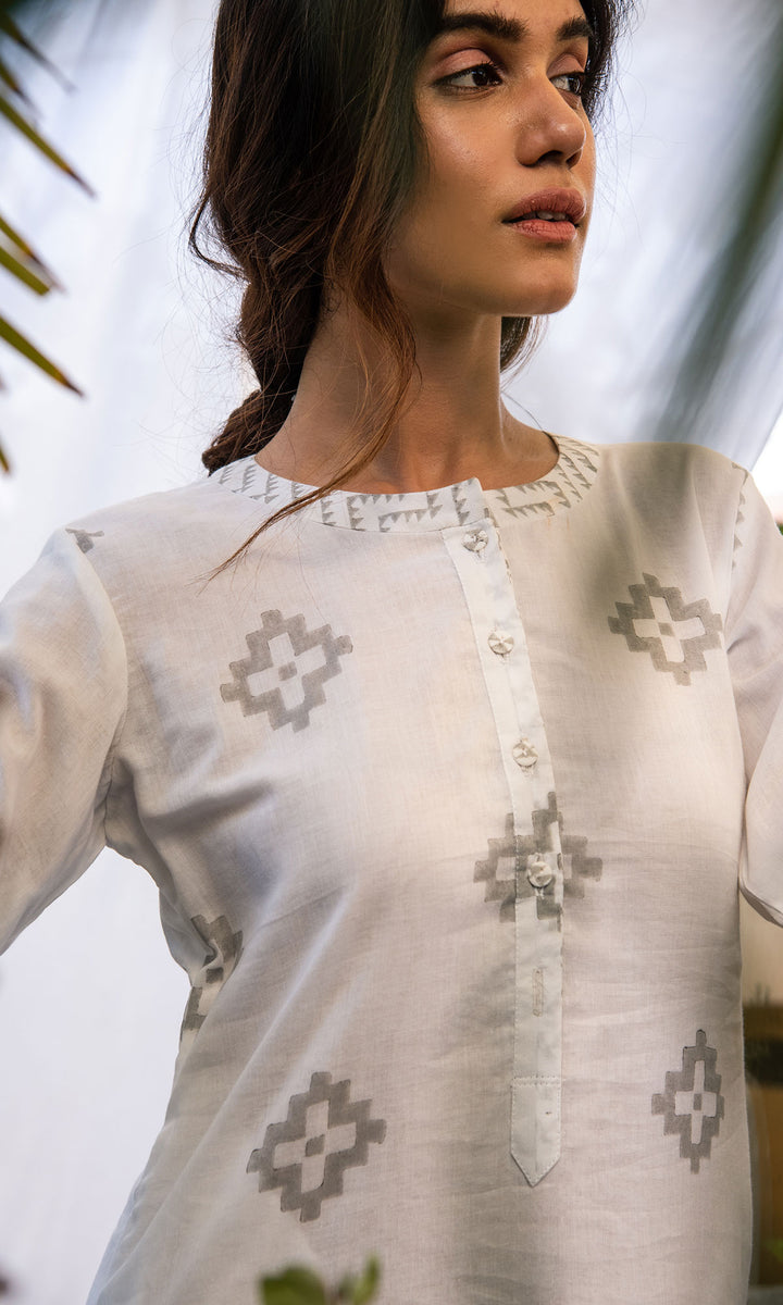 TAHIRA GREY IKAT PRINTED KURTA WITH IKAT PALAZZO - SET OF 2