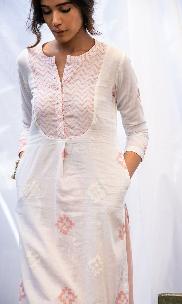 TAHIRA SOFT PINK IKAT PRINTED KURTA WITH SOLID PALAZZO - SET OF 2