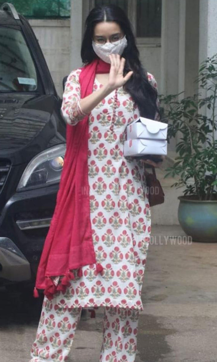 Shradha Kapoor in Red Mughal printed straight kurta with palazzo and dupatta- set of 3