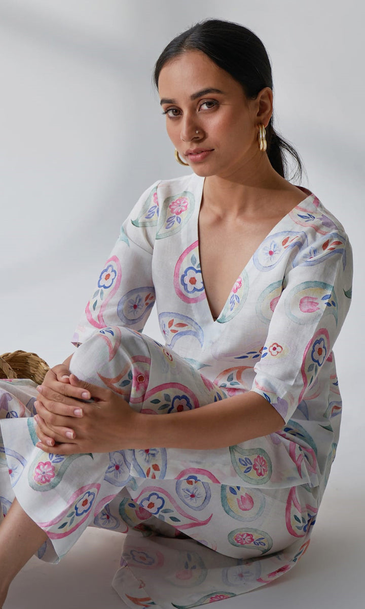 Layla - V Neck Kurta Set - Set Of 2