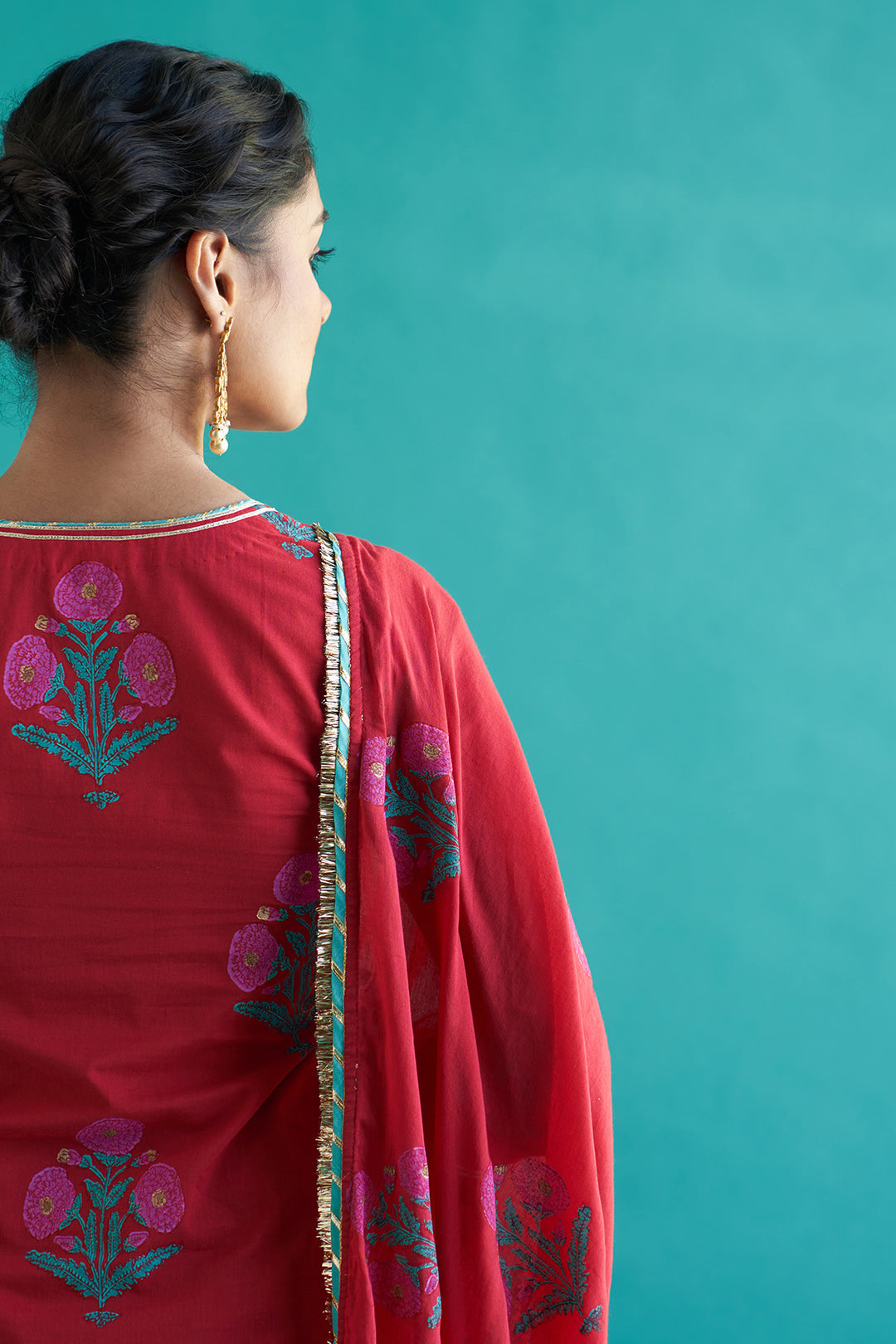 The colors seen in the image may vary from the actual product due to different computer screen resolutions and displays. This product may be hand-block printed and there might be slight irregularities in color and prints occurring. These irregularities are the hallmark of hand-block printed products and make each exquisite piece one-of-its-kind. Colors might bleed on first wash or rub on skin & light-colored garments.
