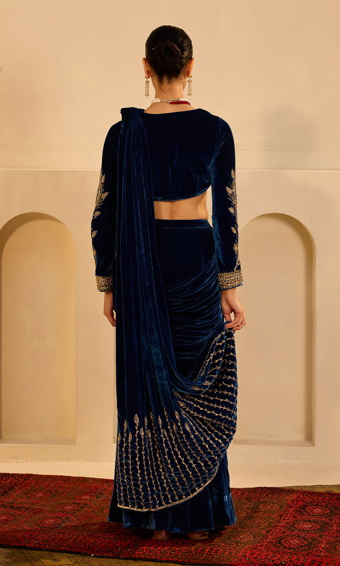 This set includes drape saree with Paded blouse. blouse is detailed With Hand Embroidery.
