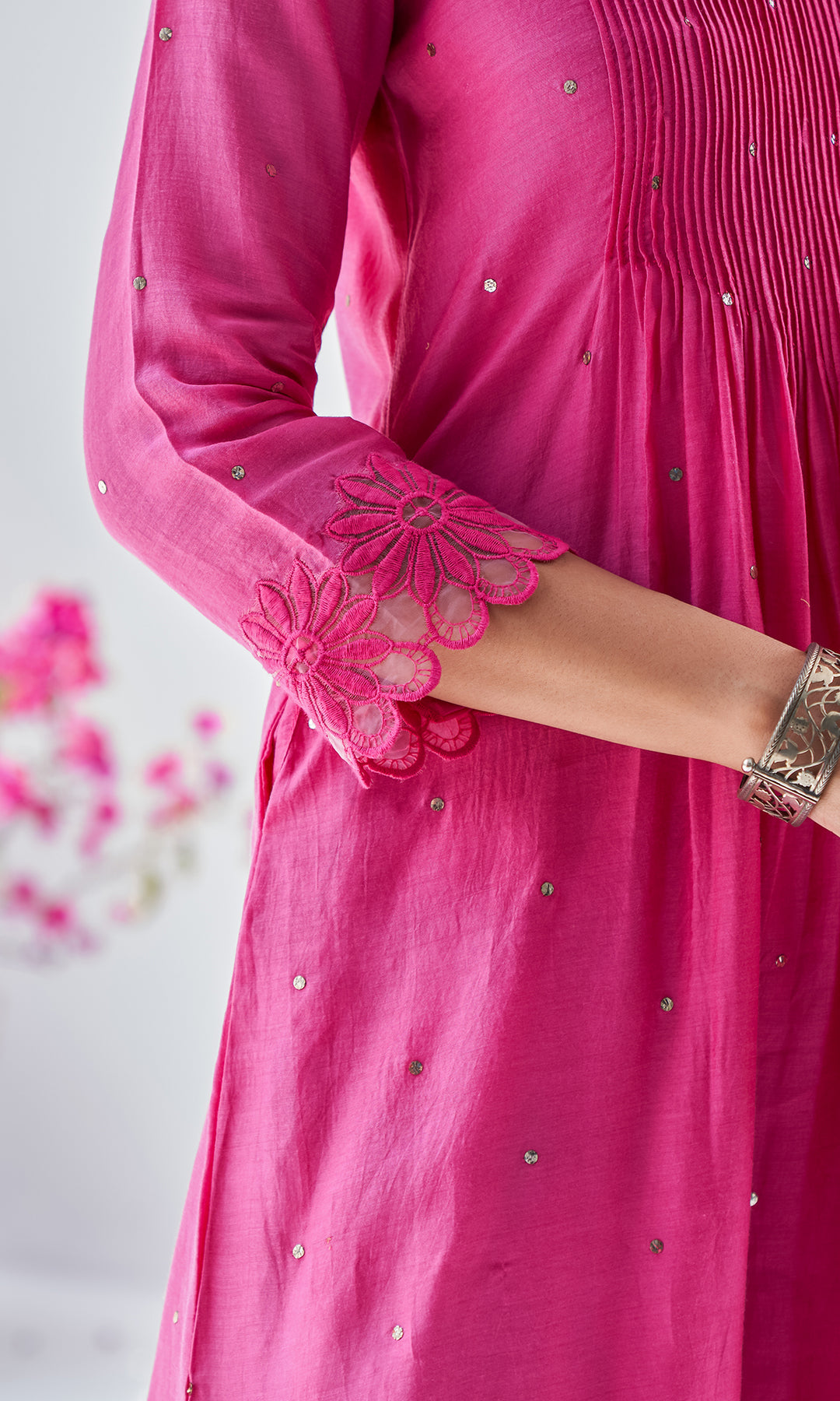 Firdaus Mughals Rani Pink Pintuck Kurta with Block Printed Salwar and Dupatta - Set of 3