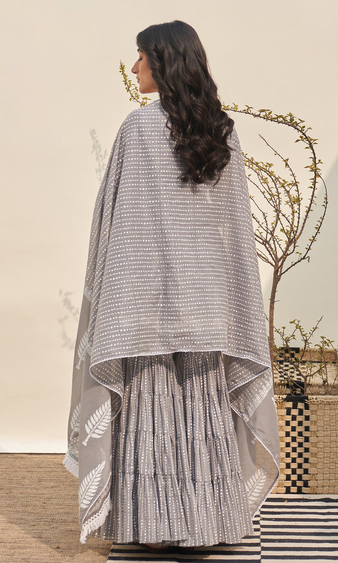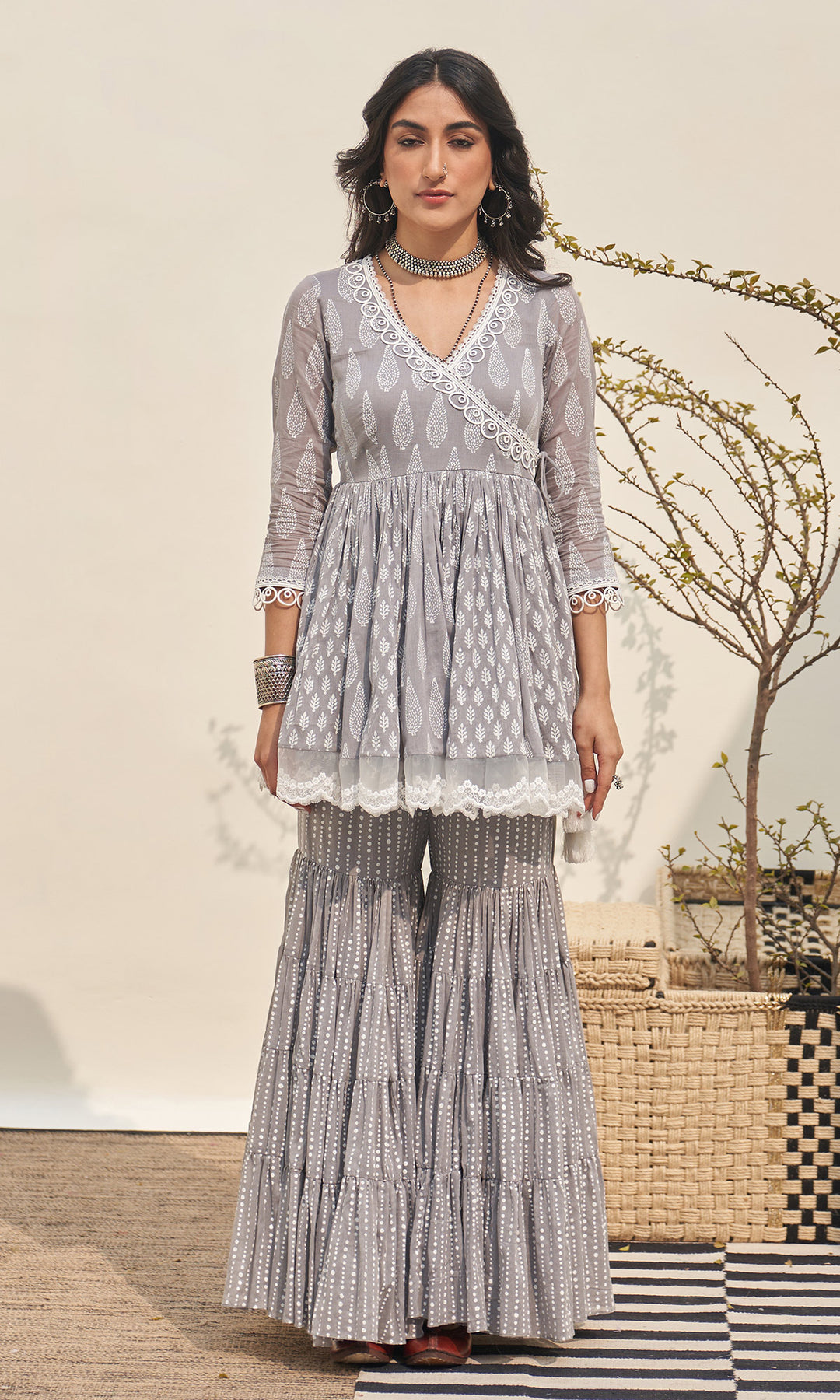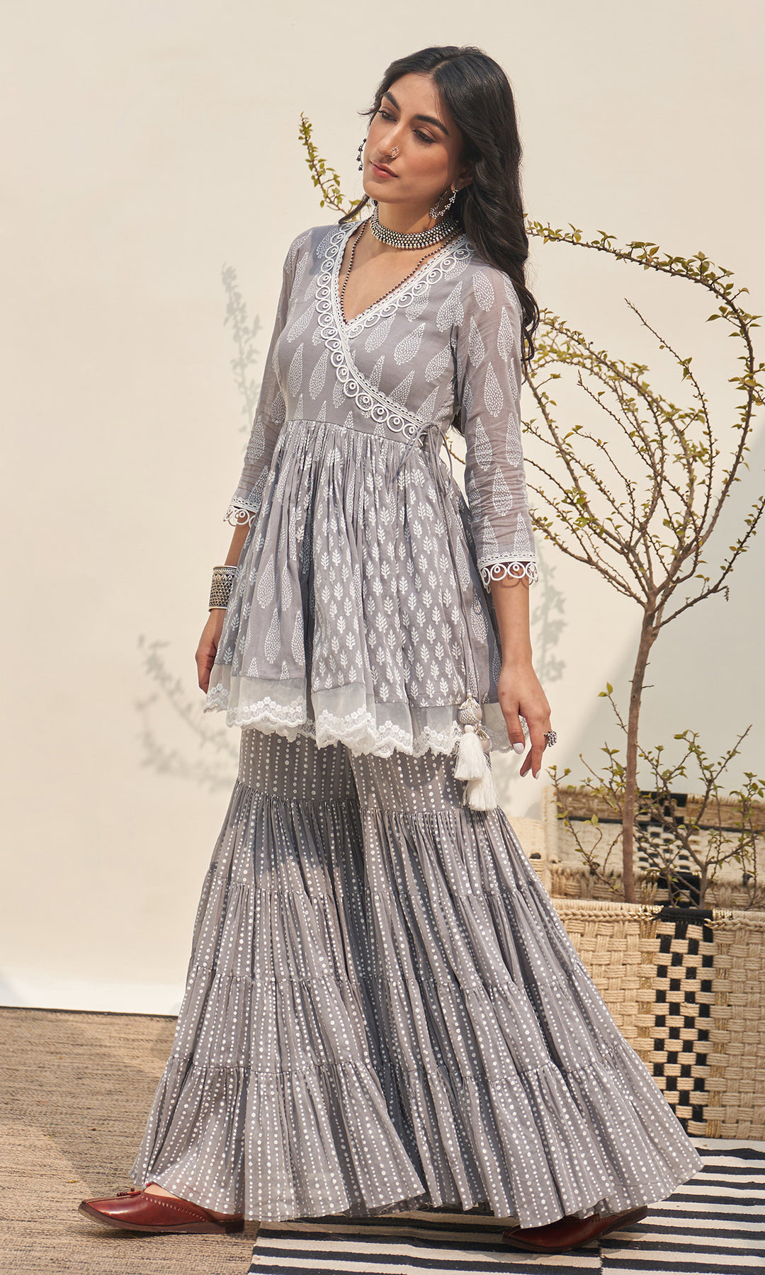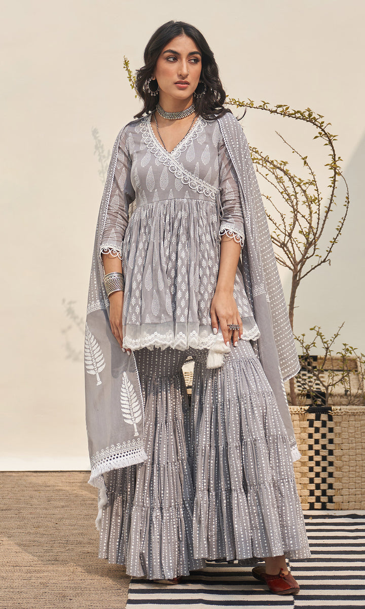 Jannat 2.0 Grey Block Printed Sharara Set - Set Of 3