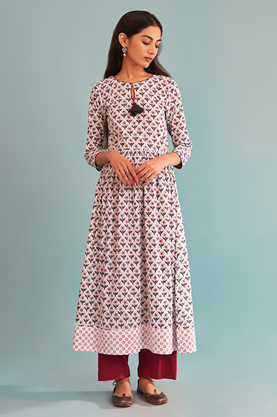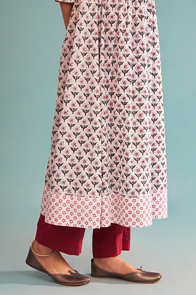 Just Cottons Block printed kali kurta with red striped pants
