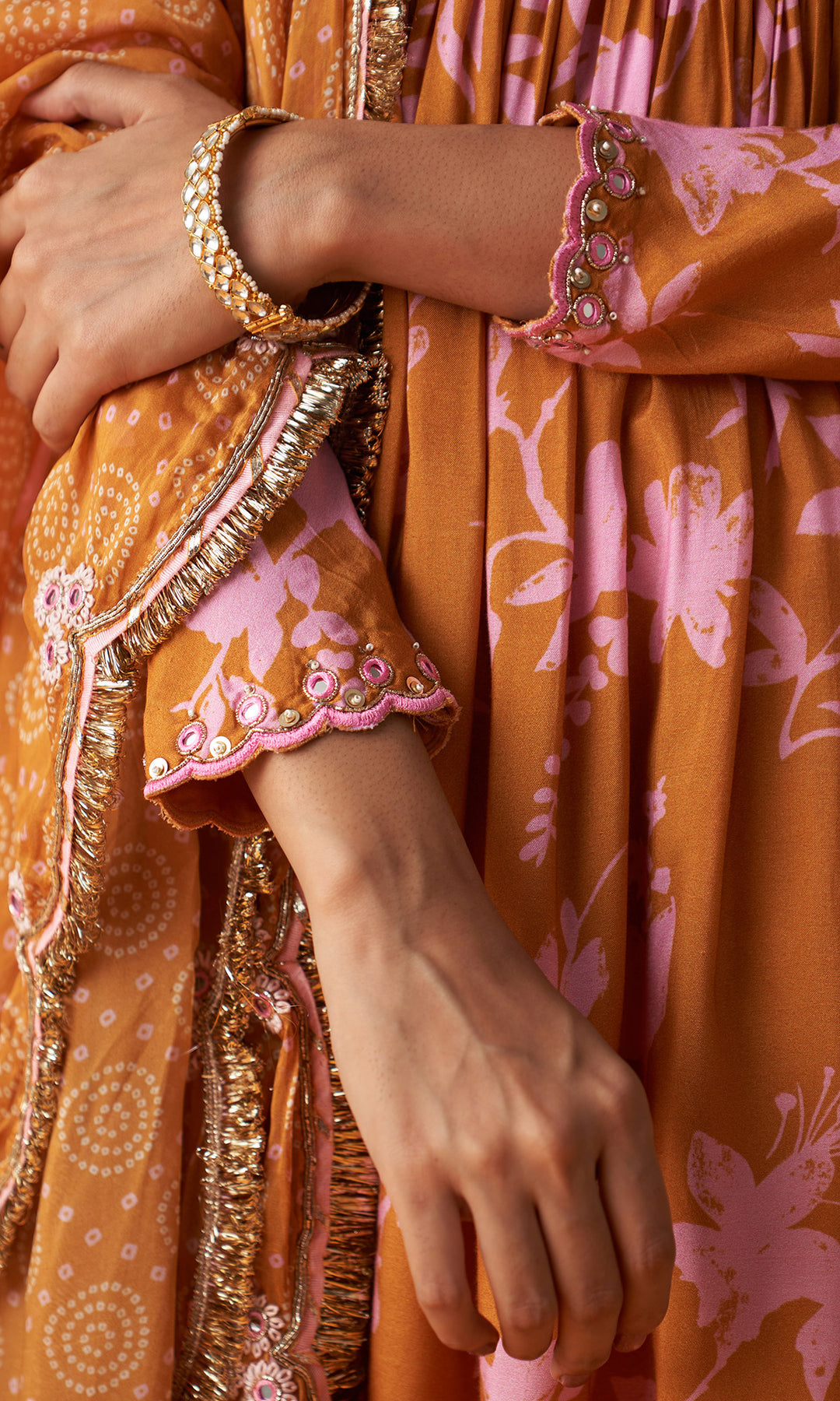 - FABRIC USED: Kurta- Muslin Lining- Mul Garara- Muslin Dupatta- Tabby chiffon