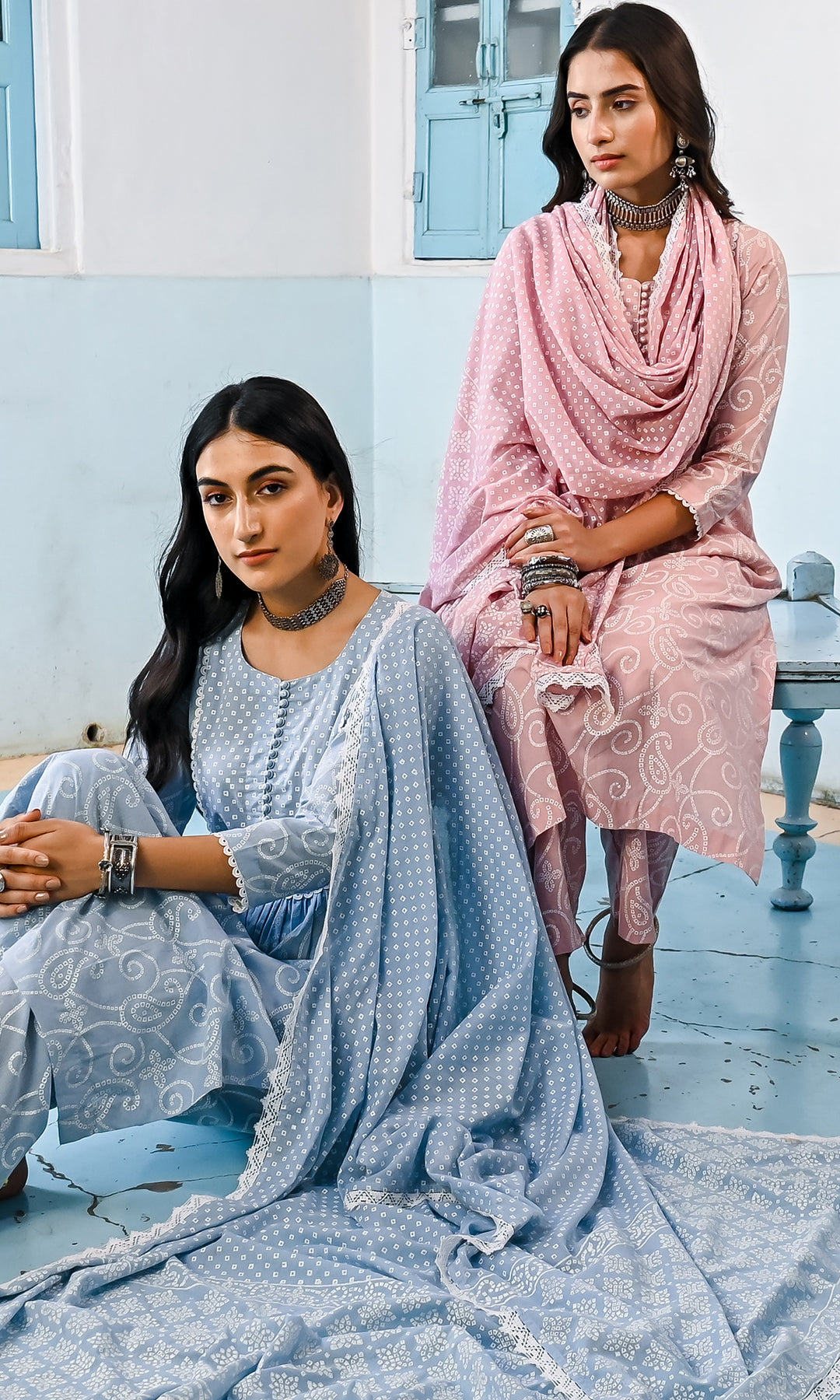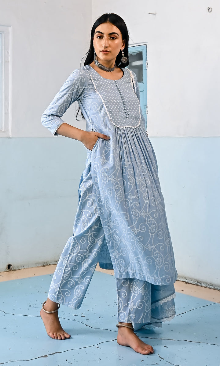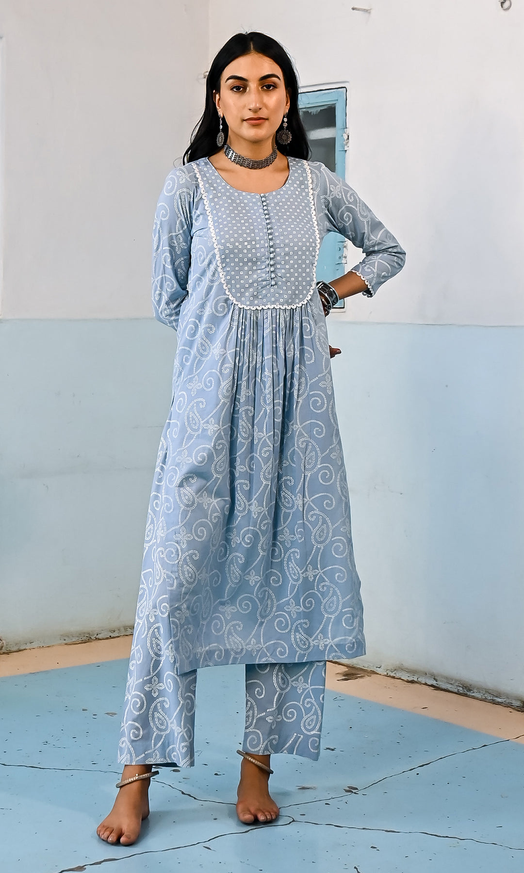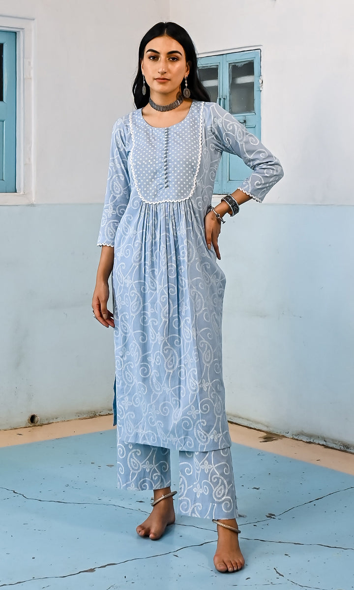 Zahrah 2.0 Powder Blue yoke kurta set - set of 3
