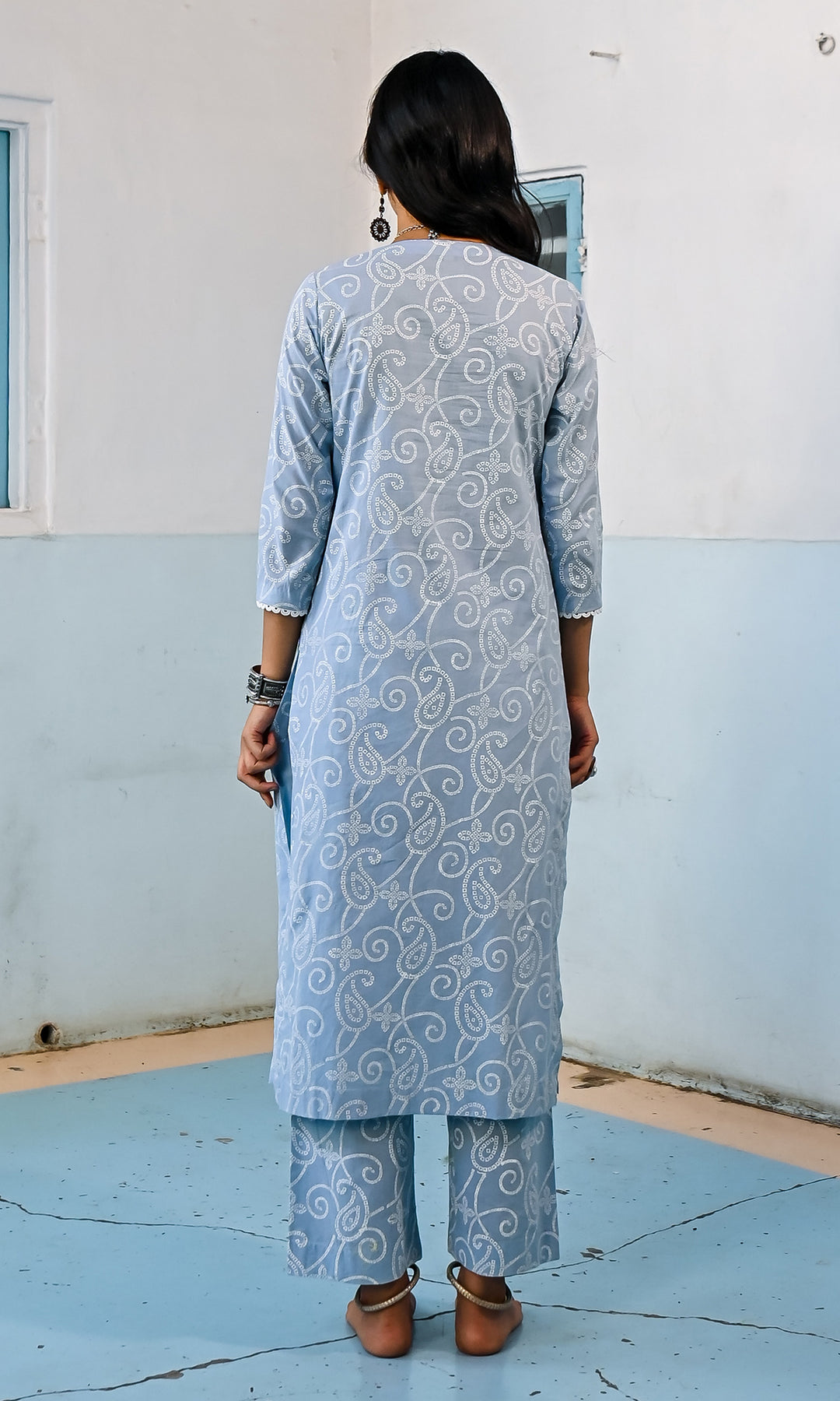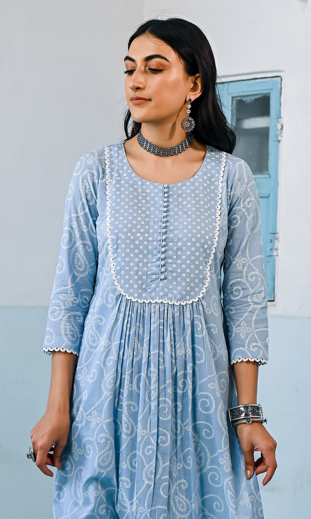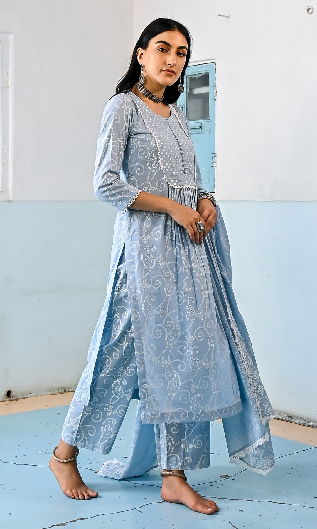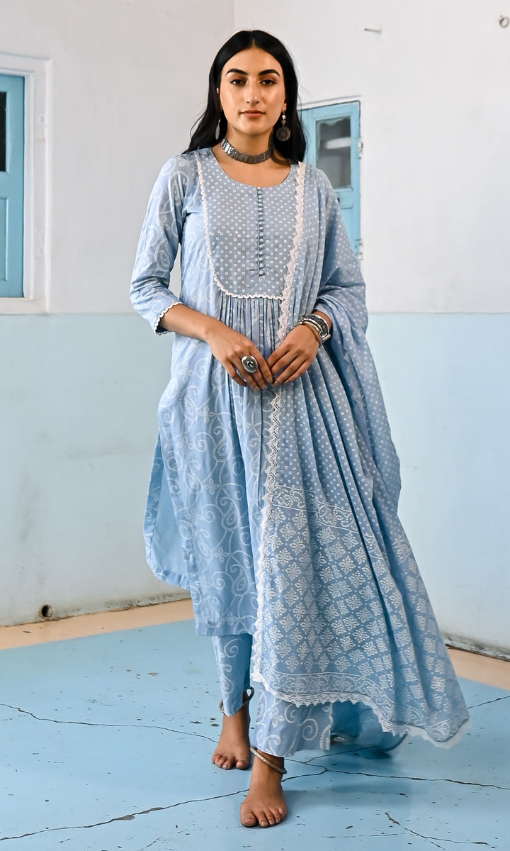 Zahrah 2.0 Powder Blue yoke kurta set - set of 3